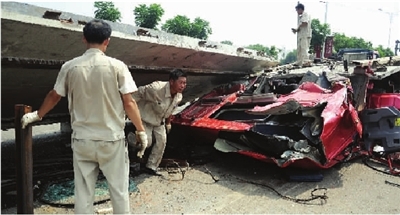 现场一名开吊车的师傅说:“这起事故本来是完全可以避免的,如果用绳索将预制板固定好,不管怎么刹车,预制板也不至于伤到车上的人噻!”