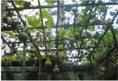 李爹以前是教化学的老师,2002年退休,4年前开始爱上“葫芦娃”,“葫字与‘福’谐音,种出来送亲友十分有寓意。”于是,他就在楼下开出一块试验田,在他的悉心照料下,每年都结出不少葫芦,今年的收成特别好。