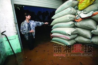 昨晚8点,107国道先锋村向公塘组路段,一店铺内的货物大部分已被淹。
