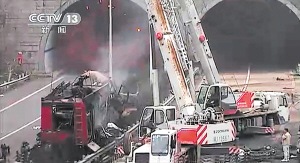 另外,事故还造成2辆消防车和5辆汽车受损。湖南交警总队高速公路管理支队昨日下午通过微博发布路况提示,称常吉高速沅陵段1119千米处殿汇平隧道由于事故导致双向通行特别缓慢。请往吉首方向的司机朋友从杭瑞高速1101千米处下高速走国道绕行,往长沙方向的司机从杭瑞高速1133千米处下高速绕行。湖南省交警总队微博也发布最新路况信息,建议往长沙方向的驾驶员朋友从1159千米处的沅陵收费站下高速绕道行驶。