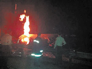 消防队员正在现场抢险。蒋仁 摄