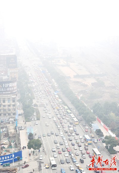 华声在线-三湘都市报11月29日讯 今晨,大半个湖南被浓雾笼罩。在长沙市区,最低能见度只有200多米,以南的株洲、湘潭能见度只有100米。