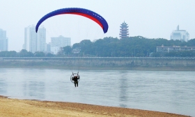 “目前从整个湖南的情况来看,株洲开展滑翔运动的条件最好。”运动员出身的“曾大虾”去过湖南多个地方进行滑翔。“株洲湘江边上有沙滩,适合低飞,另外株洲市体育中心足球场附近的那片斜坡,应该是目前湖南最适合滑翔伞训练的场所。”