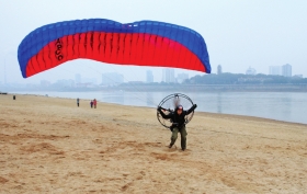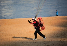 一位动力伞爱好者准备起飞。摄友团朱少培 摄