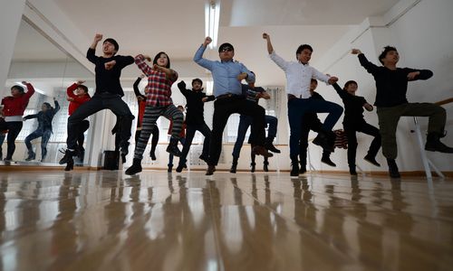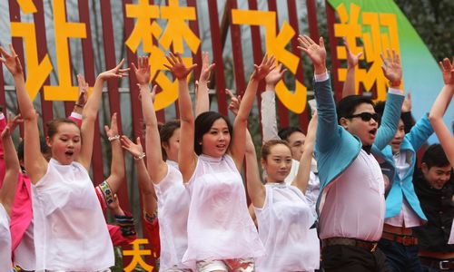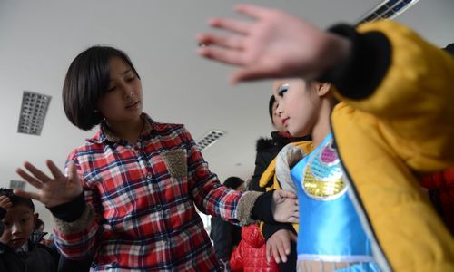 1月20日,张家界市阳光艺术学校,覃露和演员们排练舞蹈《江南style》。她因参与张家界版《江南style》MV走红网络,开始了自己的圆梦之旅。