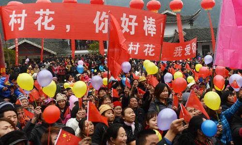 22日,村民匆匆吃过中饭,早早地赶到现场。下午2点,他们翘首企盼的“村花春晚,让梦飞翔”春晚在激昂的鼓声中拉开了序幕。
