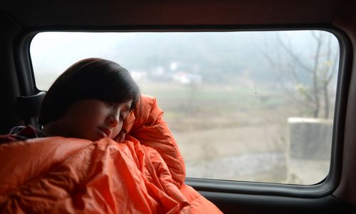 1月21日,前往武陵源区中湖乡的路上,覃露在车上睡着了。