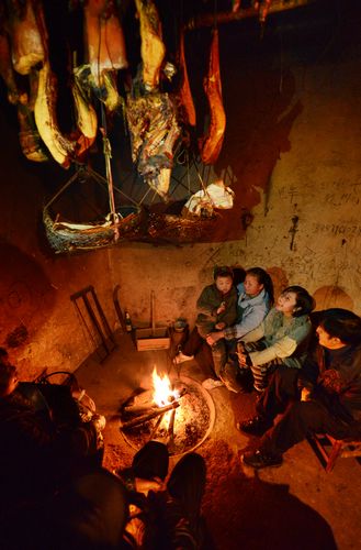 1月21日晚,已经忙碌了几天的覃露抽空回家,吃完饭后和家人围坐在火炉边聊天。