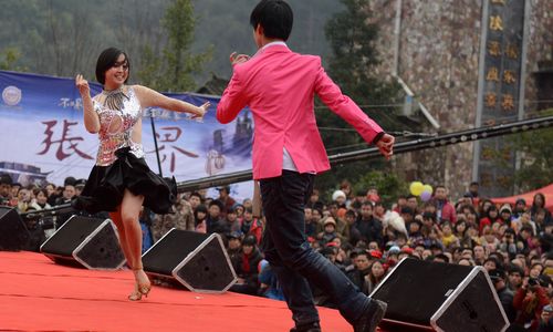 覃露与阳光艺术学校的同事表演拉丁舞时,场下的观众看得如痴如醉。