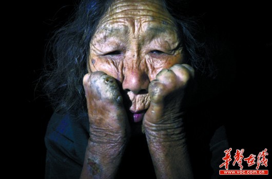 1941年出生的彭徐英,9岁时便得了麻风病,现在十个手指头完全被麻风病所“吞噬”。本组图片均由实习记者 李健 摄