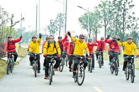 昨日,长沙金霞开发区30多位环保志愿者穿着鲜艳的运动装,自发组织骑自行车前往望城靖港踏青。