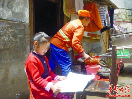 周清香告诉记者,为缓解家里的经济压力,思思4岁时,她来到长沙做环卫工,孩子只得交给爷爷奶奶照顾。2011年,两位老人身体每况愈下,思思跟着父母来到长沙。去年下半年,思思在岳麓区某小学上了小学一年级。