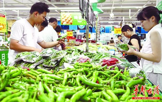 4月初,长沙某超市内,市民正在选购蔬菜。受气候等因素影响,今春全国蔬菜价格涨幅惊人。 记者 童迪 摄