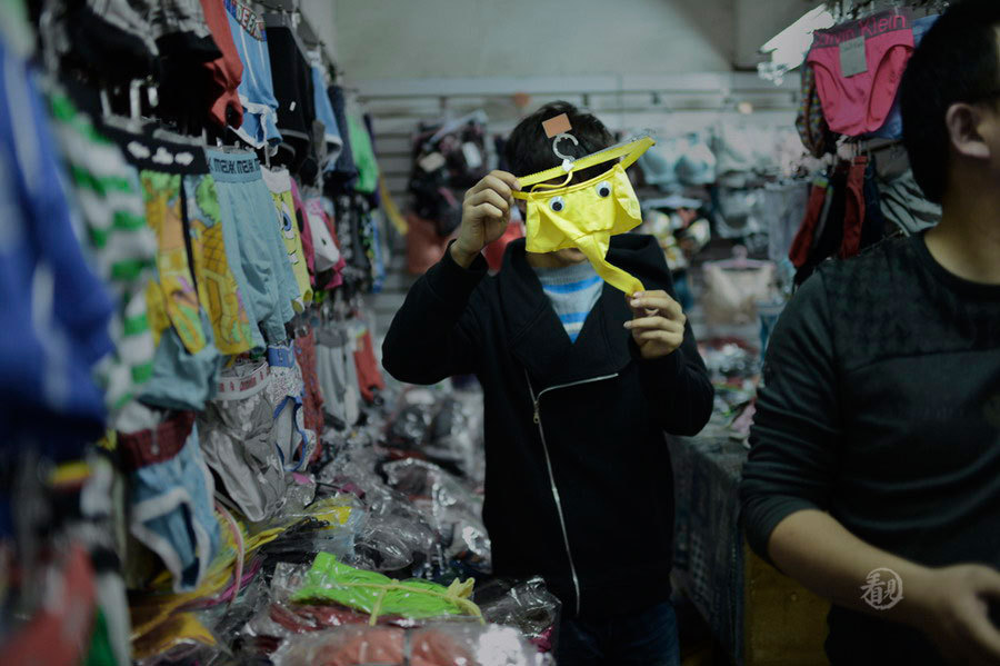 3月21日,长沙,下河街,晓亮在挑选内裤。摄影:杨抒怀