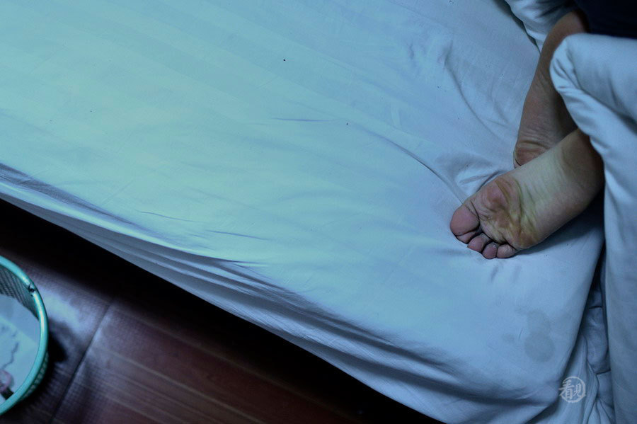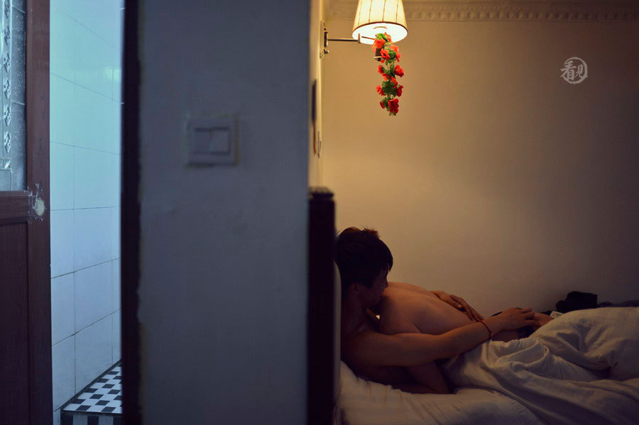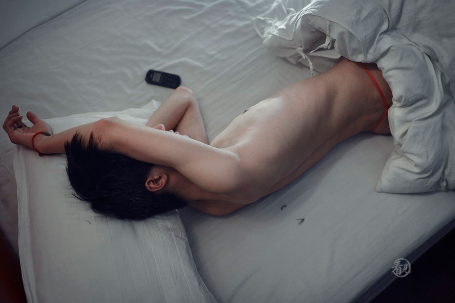 和客人激情过后,晓亮在床上休息。晓亮的父亲是火柴厂的员工,父亲离婚后他一直被母亲养着,母亲一直未再婚。现在是庙里的常驻居士,母亲希望他早点退出这个圈子,去做和尚。摄影:杨抒怀