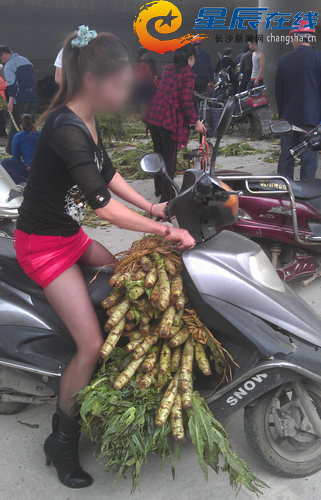 据附近居民介绍,无主莴笋早在4月14日晚就堆在了这里。16日上午,不知谁说:“快去拿免费莴笋!”于是10点多,四面八方赶来的市民用蛇皮袋装、用电动车拖、用三轮车拖……一名身着小短裙的“黑丝”美女不顾形象,跨着双腿运走一电动车的莴笋;环卫工人顾不上脏,清空装垃圾的袋子,满袋满袋运走;附近居民呼朋唤友结伴而来……
