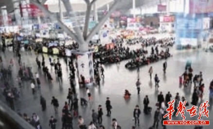 4月12日,长沙火车南站,京广高铁长沙南到汨罗段一隧道出现漏水,导致高铁列车大面积延误,许多旅客滞留在长沙南站。 实习记者 李健 摄