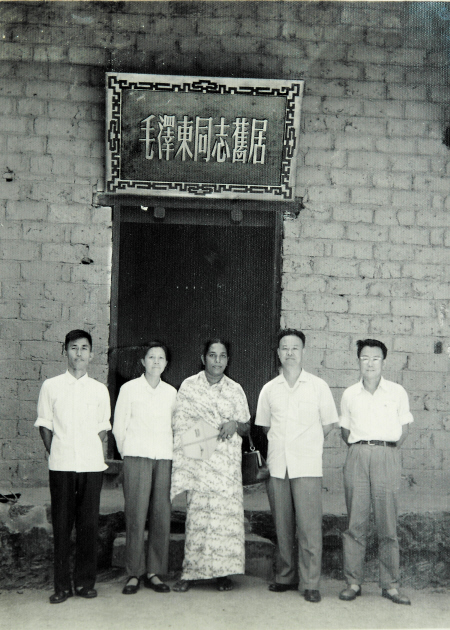 1963年,时任宣传部副部长的妈妈(前排左二)陪同斯里兰卡的古夫人在韶山毛泽东旧居前合影。