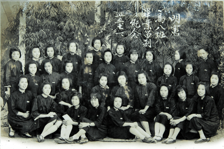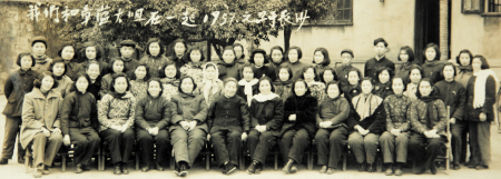 这是1946年10月1日,母亲在长沙有名的女校明宪女中的毕业照。二排右二为母亲。
