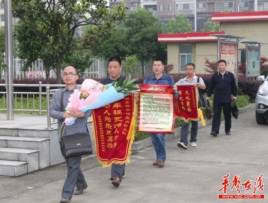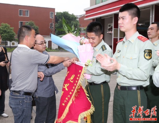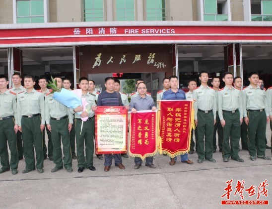 三湘都市报-华声在线岳阳记者站讯(记者袁礼成 通讯员 陈帅 郭峰) 武侠故事中,英雄大侠救人性命从不留名。岳阳市消防支队岳阳楼区大队副指导员丁洋亦是这样一位奋勇救人不留名的英雄。今年清明节期间,衡东有二人驾车从乡里返回县城,中途遇车祸,司机被淹死,大队消防战士丁洋回家探亲,正好路过。奋不顾身跳入冰冷水中,救人,然后不留姓名悄然走了。幸存者当时昏迷不醒,事隔一个多月后经多方打听,才知道是他。今天,幸存者亲赴岳阳,当面送锦旗,感谢消队大队和救命恩人。