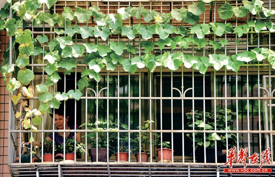 华声在线7月23日讯 临近正午,室外温度高达37℃,长沙月湖大市场C区10栋的刘美华家室内温度仅27℃,风扇不开亦很清凉。刘美华说,这份凉爽要归功于自制的降温神器——丝瓜藤窗帘。“谁来跟我PK降温的‘绿色窗帘’,我就把最爱的绣球花送给他。”自信满满的刘美华很想通过本报96258寻找志同道合的“降温达人”。