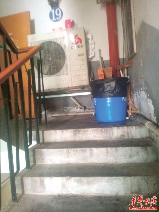 随后,小吴将记者带到他们的消防通道,记者看到,在不足两米宽的消防通道上摆满了垃圾桶、盆栽、废旧纸盒等杂物,更有甚者还将空调安装到了消防通道上。“如果发生火灾,后果将不堪设想。”小吴很担忧。