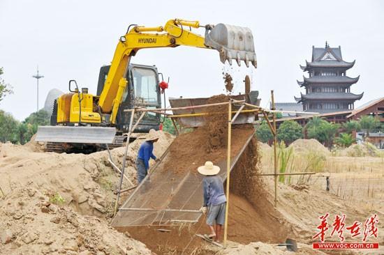 8月18日,长沙市橘子洲沙滩公园正在紧张的施工中。沙滩公园将力争于年内竣工开园。