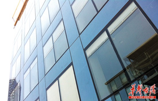 ▲“天空城市”试搭段外面的玻璃幕墙。三湘华声全媒体记者 田超 实习生 余劭劼 摄