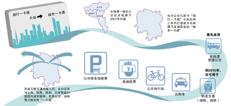 据了解,至2015年,长株潭综合交通一卡通发卡量将达500万张,刷卡率达50%。同时,将扩大长株潭公交一卡通使用范围,除在长株潭三市范围内的城际铁路、城际公交、轨道交通、公共汽电车、出租汽车外,还可适用于三市高速公路收费、公共停车场库、公共租赁自行车等各种运输方式,并可跨市结算。