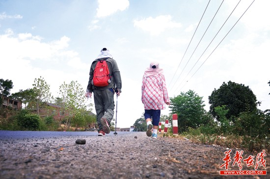 也是这天,三湘华声全媒体记者在217省道172KM+400M与这对父女接头,并陪同他们走了17公里。