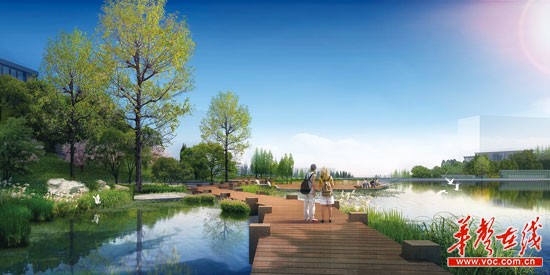 以运动健身为特色的龙湖体育公园占地面积250亩,充分尊重原始地形,利用原台地建设,分集会广场、运动健身、湖滨休闲、湿地、功能建筑、生态休闲六个功能区。