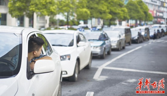 9月24日中午,长沙市侯家塘立交桥下,左转车道排长队。 记者 李丹 摄