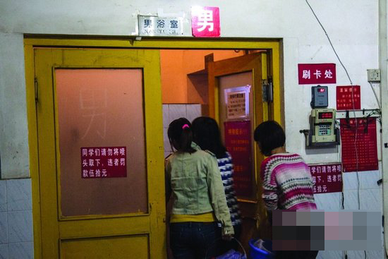 9月5日下午,湖南财政经济学院,提着洗漱用品的女生陆陆续续地走进男生浴室冲凉。图/实习生李菁菁