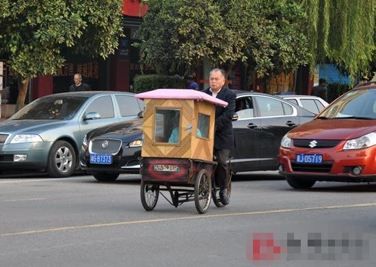 近日,腾讯微博上一组图片惊爆了常德网友的眼球:常德一位老人为接送孙女自制了一辆三轮“神车”,并配图为证。图片显示,这辆“神车”木制车厢,布艺车顶,沙发独座,还颇显档次。发帖人“伍毅”称,这辆爱孙“神车”低碳环保环保,360°环景车窗,足以秒杀奥迪宝马。名博“路边社湖南分社”转载后,引起诸多网友关注,连呼老爷子“有才”、“高手”。