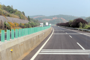 昨日上午10时多,记者乘车体验发现,相比一般高速公路的水泥路面,此次大修路段全部采用黑色沥青路面。高速路最高限制时速为120公里,记者将车速提至100公里/小时,坐在车内却感觉不到高速行驶带来的颠簸感。关上车窗,车内仅有细小的胎噪声,而如果是在水泥路面行驶,车内则有清晰的轰隆声。