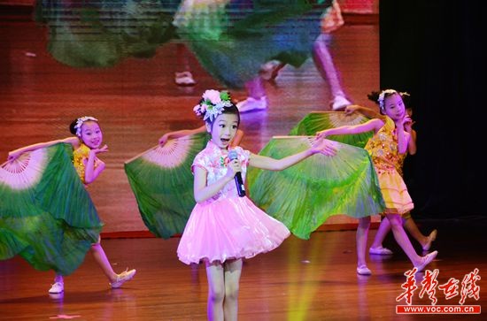 图为歌伴舞表演《大地飞歌》,现场大部分节目由长沙市舞蹈家协会少儿歌舞专业委员会选送,小演员们大都是幼儿园的孩子。 记者 李毅 摄