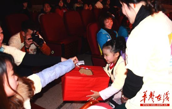 “微孝小天使”在观众席募捐,人们纷纷慷慨解囊。 记者 李毅 摄