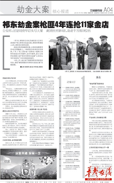 去年1月2日,两男子持枪冲进祁东县城正东路上的周大生珠宝店,掠取店内黄金首饰两千余克,价值80余万元。案发后,公安部高度重视,将此案与4年多来发生在数个省市的另外10起抢劫金店案并案侦查,确定为全国公安机关2013年继周克华案件后的头号大案,挂牌督办。2013年1月7日,系列抢劫金店案的主犯唐奇湾、骆忠良落网。