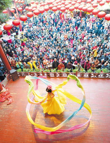 火宫殿庙会上各种精彩民俗演出让市民过足了瘾。陈飞 摄