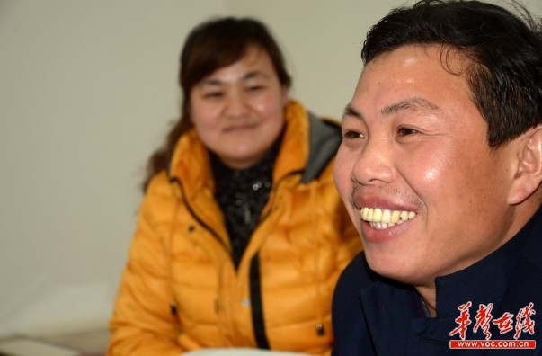 下班回到家,尽管“累得不想动弹”,在妻子的注视下詹永利仍然笑得很开心。