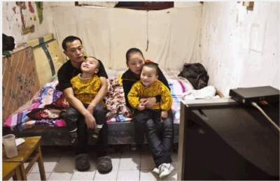 看电视是一家四口唯一的娱乐活动,乐趣不大却无比温馨。