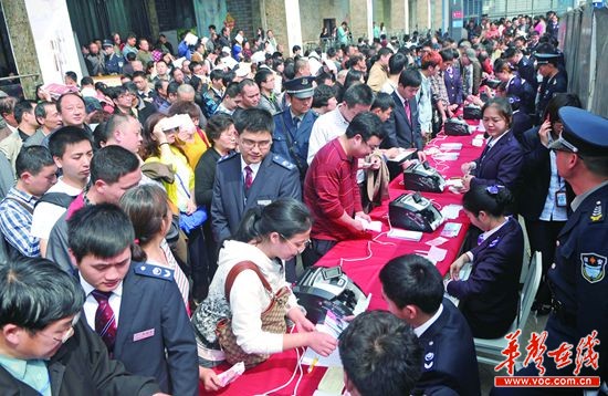 4月9日,长沙地铁储值卡正式对外发售,上千市民排队购卡。 记者 李健 摄