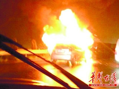 2014-04-07 07:54 [来源:华声在线] [作者:王为薇] [责编:吴涛]小车高速自燃,途中十余台车追尾