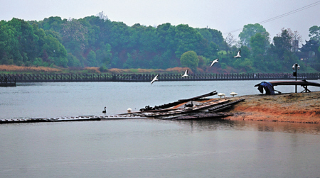 从溁湾镇出发,由潇湘路驱车向南近30公里,再经过数公里土路,记者来到岳麓区坪塘街道鹅洲渡口。宽阔的江面上,有一艘崭新的轮船正载着行人车辆,在河的两岸来回穿梭。这艘具有现代气息的铁板轮船是岳麓区政府出资110万元,于今年5月1日投入使用,可以同时容纳6台小车和数十人同时过河,结束了“想进出鹅洲,摆渡需要半小时”的历史。