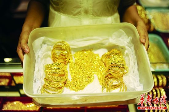 6月16日,长沙市五一大道某黄金饰品店,工作人员展示那天在公交车上失而复得的黄金饰品。记者 童迪 摄