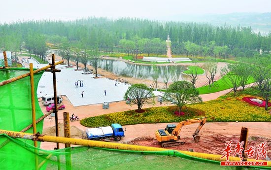 长沙市岳麓区巴溪洲水上公园建设工地,工作人员正在进行绿化施工。记者 田超 摄