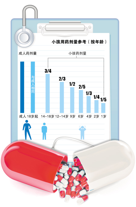 怎样确保儿童用药安全?中南大学湘雅二医院药剂科专家表示,目前,计算儿童用药剂量主要有4个依据:年龄、体重、体表面积和药品说明书。一般情况,按年龄计算时,1岁儿童用药剂量为成人的1/5,2岁为1/4,4岁为1/3,6岁为2/5,9岁为1/2,12-14岁为2/3,14-18岁为3/4,18岁开始即与成人用药剂量相同。