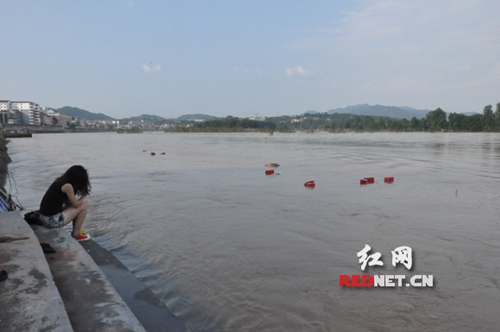 7月18日,麻阳县城锦江边。郁闷的小超市老板吴女士看着河边飘来的商品,说和自家损失的货品一模一样。