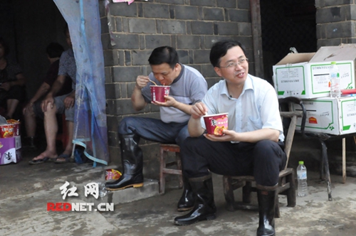 洪水退了,生活在继续。7月19日清早,看到对面的早餐店终于开了门,湖南省怀化市麻阳县委书记胡佳武决定先吃碗米粉再走。