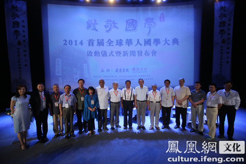 凤凰网文化讯 2014年7月11日15时,由凤凰网、岳麓书院联合主办的“致敬国学--首届全球华人国学大典”启动仪式暨新闻发布会在北京中华世纪坛隆重举行。凤凰网总裁李亚、湖南大学党委书记刘克利、岳麓书院院长朱汉民、著名哲学家李泽厚、著名历史学家李学勤、钱穆之子、国际儒联副会长钱逊及学者王学泰、杨天石、毛佩琦、秋风等出席了发布会。此外,前教育部发言人、现语文出版社社长王旭明、中国教育科学研究院研究员储朝晖、清华附小课程研究中心负责人胡兰等教育界人士也莅临了现场。发布会由著名主持人许戈辉主持,云集数十位文史大家及各界名流,他们共同见证了中华文化史上的国学盛事。